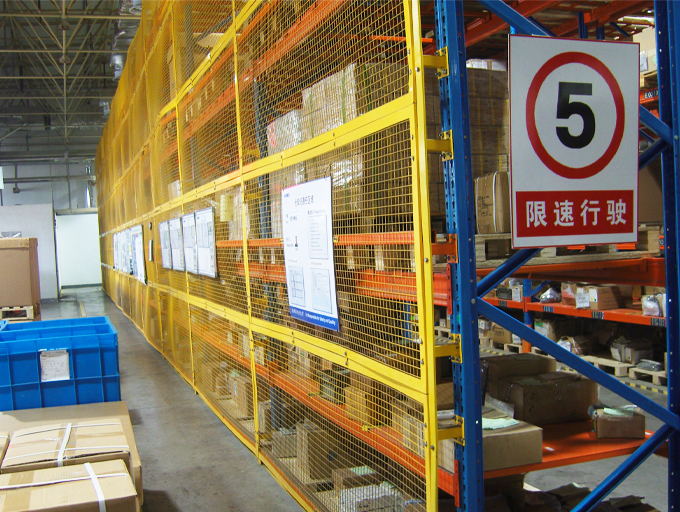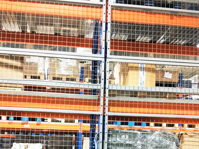 貨架背網:是一種將貨架放貨區域進行保護的金屬網墻,使空間規劃隔離,貨物分類隔離存放,防止散件物品高空掉落。